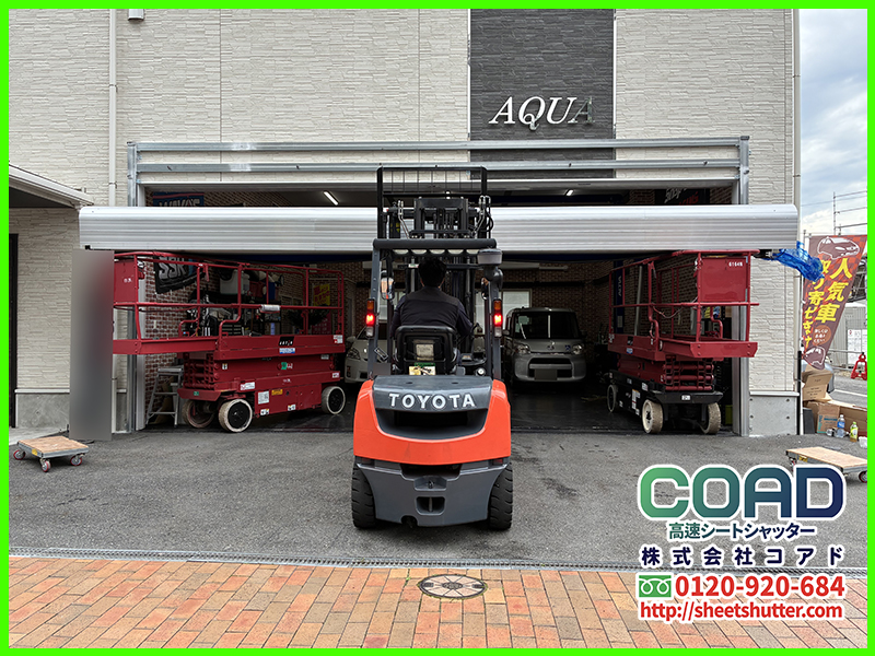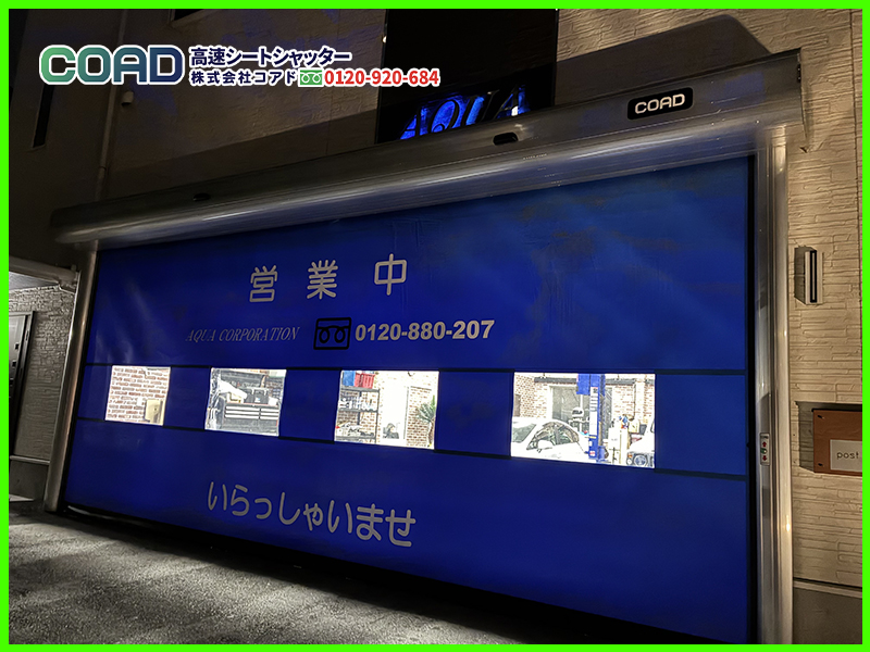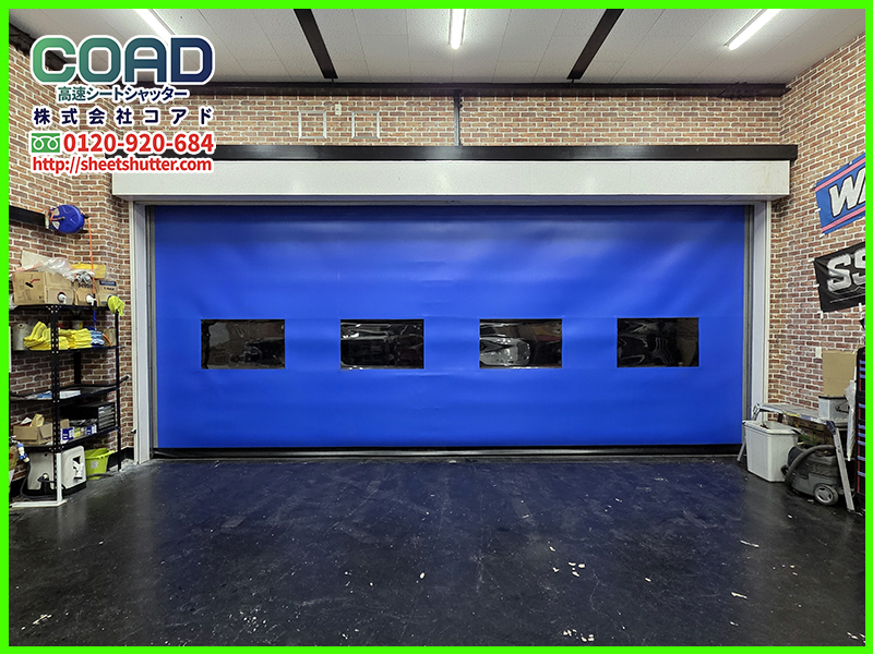 間口が広い車整備工場にピッタリのプレミアム高速シートシャッター