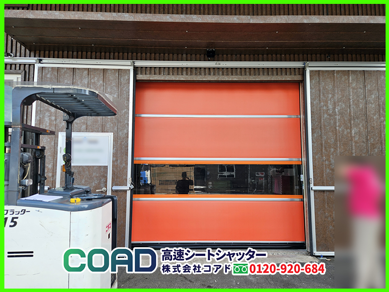 搬出入が頻繁な行われる出入口の作業効率と工場内部の環境改善まで完結した、カスタマイズ高速シートシャッター!