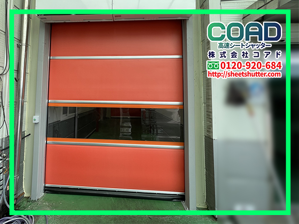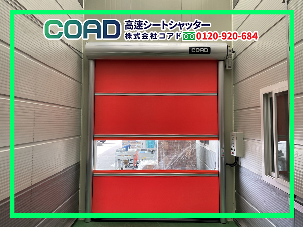 コアドの高速シートシャッターは、1秒で3メートルという開閉速度、シンプルな操作性、そして直営による安定した施工とアフターサービスを強みにしています。