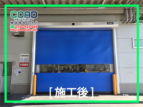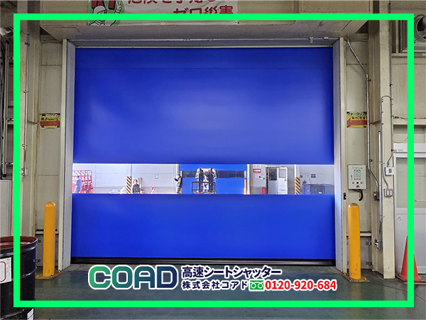 工場の出入口にプレミアム仕様のシートシャッターを設置し、作業効率と作業環境まで改善した事例!